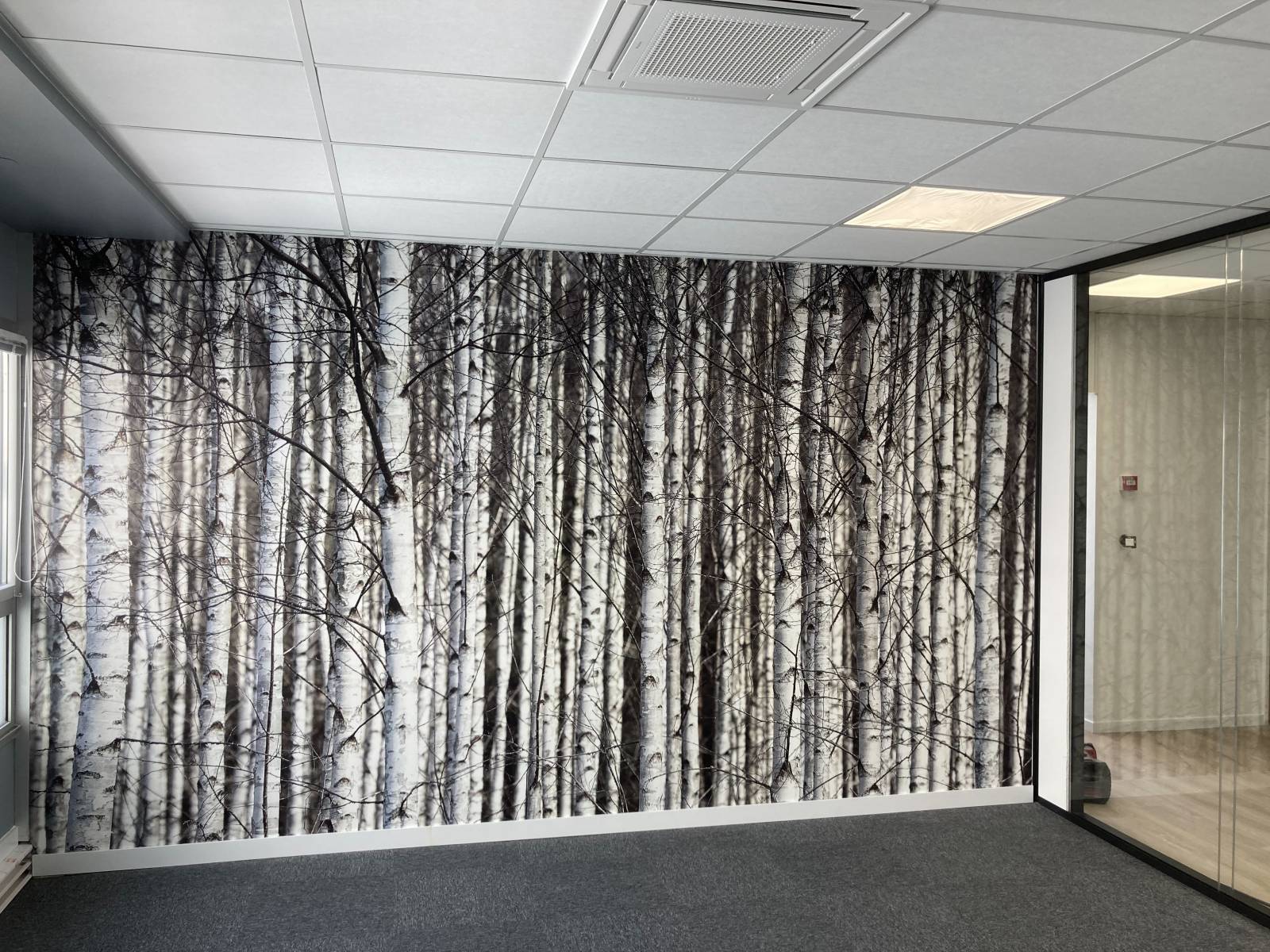 Pour finir l’ameublement d’un bureau, nous avons posé un revêtement mural panoramique.