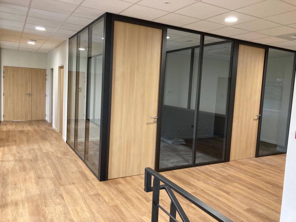 Beaucoup de cloisons amovibles vitrées toute hauteur ont été posées pour apporter beaucoup de luminosité , mais aussi des cloisons amovibles vitrées sur allège pour un peu plus de confidentialité mais toujours beaucoup de clareté.